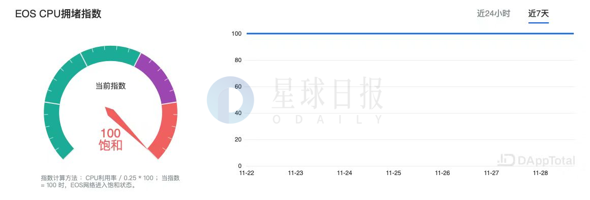 DAppTotal:昨日EOS主网CPU拥堵指数为100%,EIDOS实际消耗占比75.84%