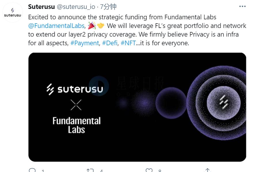 隐私保护项目Suterusu获得Fundamental Labs战略投资,协助其二层隐私支付网络拓展