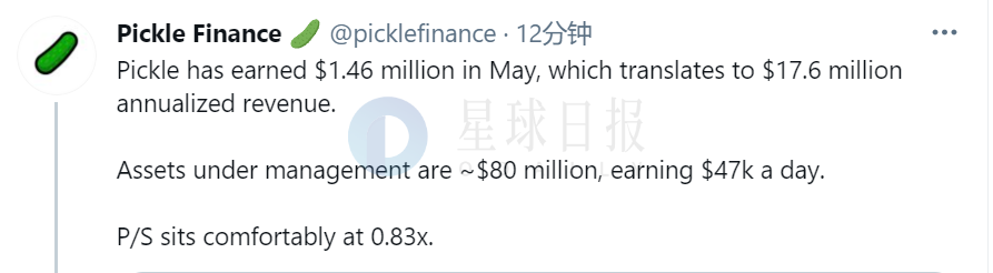 Pickle Finance 5月份收入146万美元,目前管理约8000万美元资产