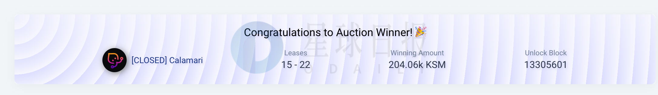 截至目前,赢得Kusama插槽的七个平行链分别是Karura、Moonriver、Shiden、Khala、Bifrost、KILT和Calamari。