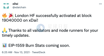 以太坊侧链xDai已激活包含EIP-1559的伦敦硬分叉升级