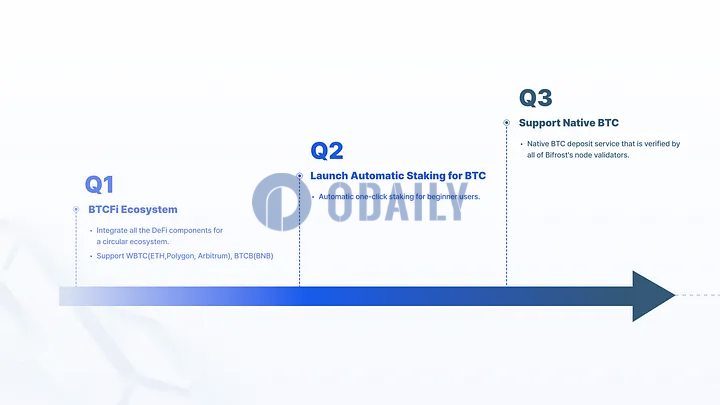 -第一季度构建 BTCFi 生态系统,为循环生态系统集成所有 DeFi 组件,支持 WBTC(ETH、Polygon、Arbitrum)以及BTCB(BNB);