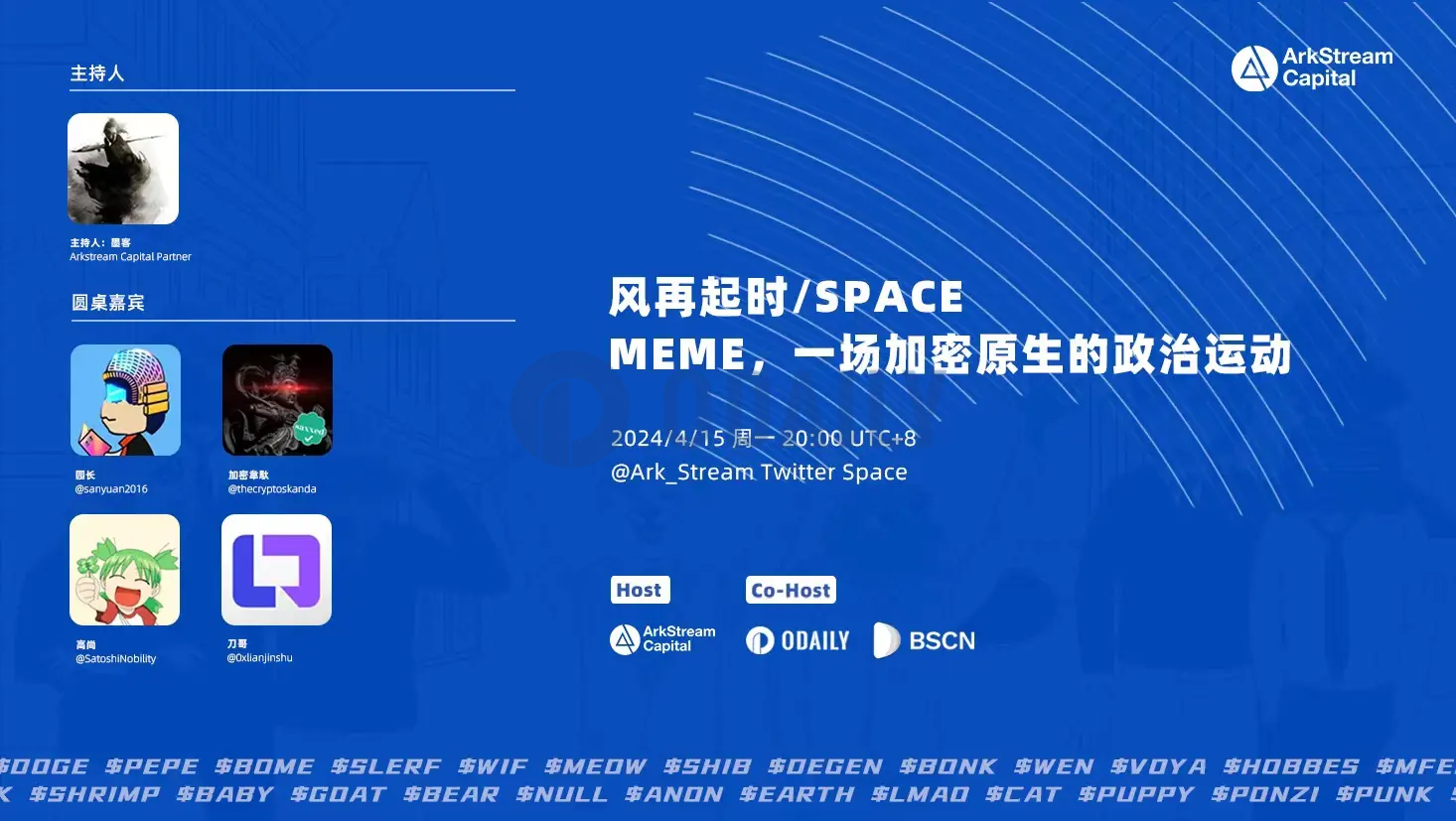 今晚8点,ArkStream Capital x Odaily Space共同探索MEME投资哲学