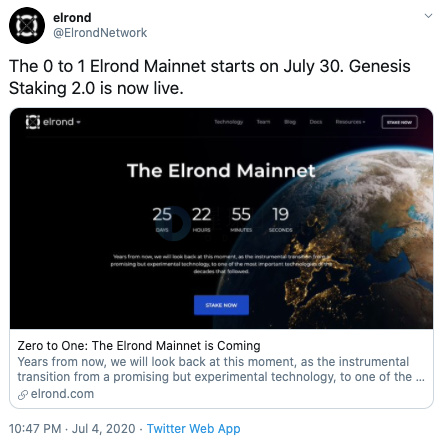 分片项目Elrond已在7月4日开启创世纪质押2.0(Genesis Staking 2.0)阶段,并宣布主网上线时间为7月30日。据此前报道,Elrond供应将参考比特币的供应模式,将在10年内达到固定的最大供应量。Elrond每个节点的固定权益是250万 ERD,代币的Staking上限增加16.725亿ERD,其中委托人额外增加11.225亿ERD,5.5亿增加给验证人。