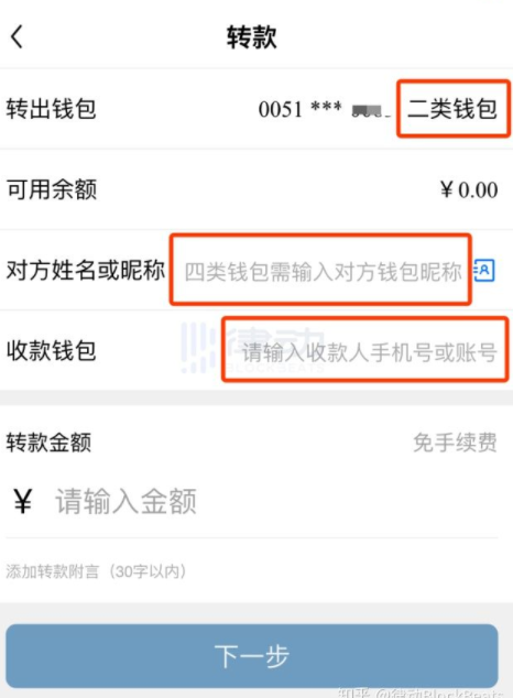 其中重点的转账界面可以看到当前对钱包进行了分级,默认为二级钱包。同时需要对方的手机号和真实姓名。