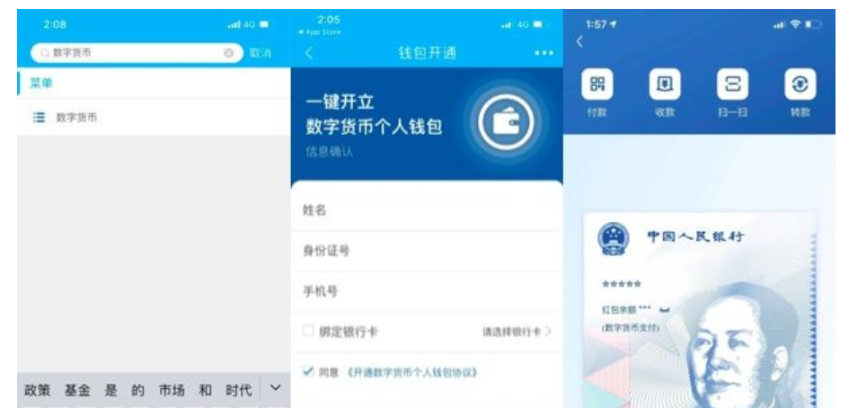 有媒体报道称,用户仅需下载建行 APP,在搜索栏输入「数字货币」,点击「创建数字货币钱包」,在与建行账户绑定后,即可完成开通。
