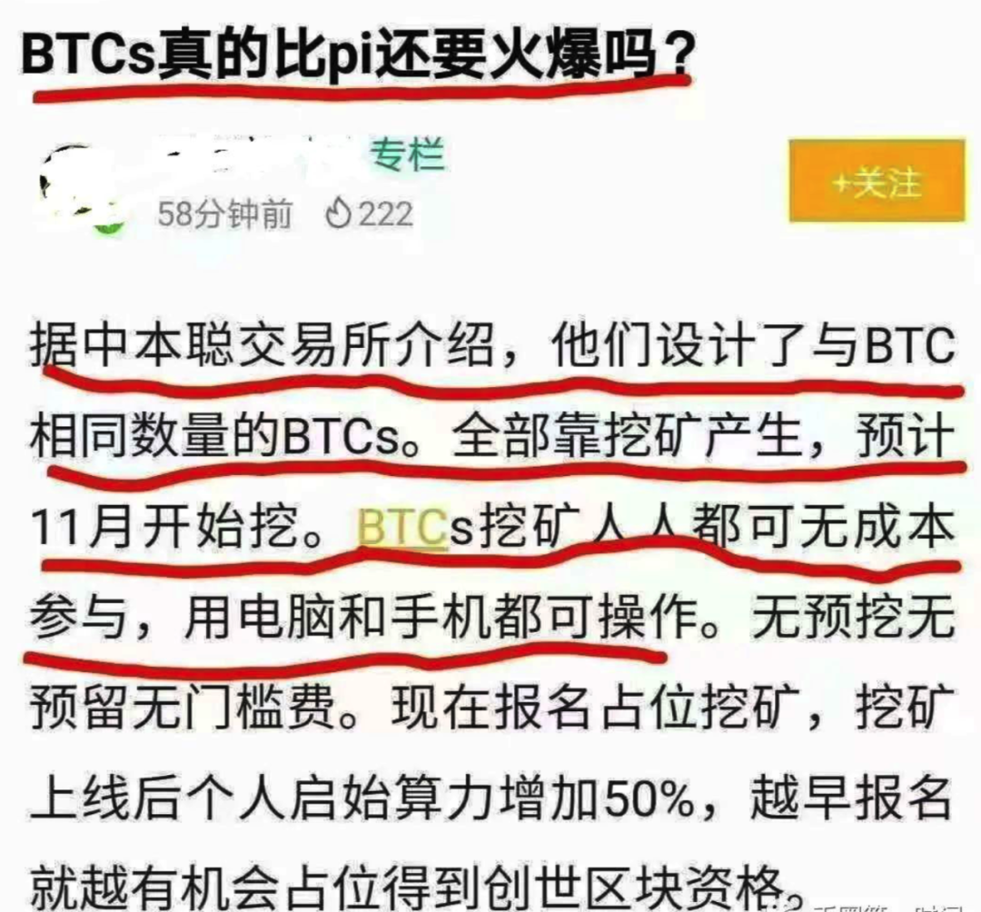 另外,说句题外话,从最近几个项目(如秀刻、BTCS)的宣传模式中可以发现,基本套路变了,以前传销项目都是先悄咪咪上,慢慢发展,现在是先大张旗鼓的宣传,到市场成熟再上线抢首码,让大家都觉得在同一个起跑线上,所有人都是首批成员。