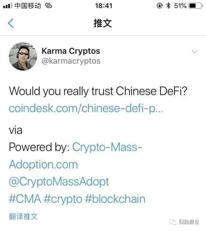 而来自中国的开发者、项目们,同样应该审视自身的做法。开发一个中文版本的界面、撰写一份中文版本的指南并不难,资金盘项目都会开发一个双语界面,DeFi为何不可?中国如此庞大的人口基础,潜在的用户也一定多,哪怕比例低,但绝对数量并不差。DeFi实际上也并没有多么复杂,金融活动我们每个人都做过,项目方做一点细致的运营工作,肯定能够让用户理解。要知道,AAVE等DeFi项目都已经开始进军中国市场,而我们土生土长的项目,嘴边的肉怎么能放弃?