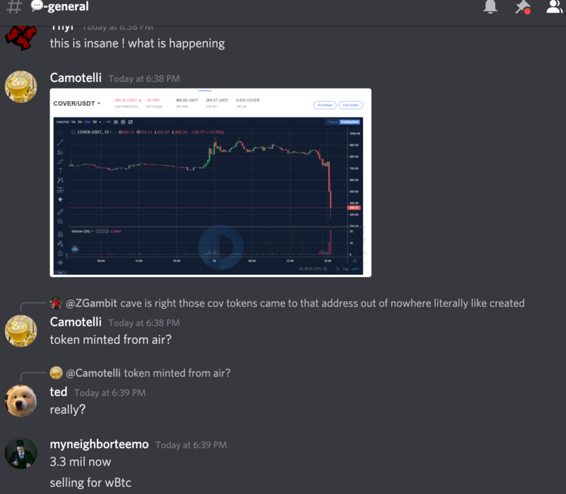 社群中,也有不少投资者认为这只是谣言,在 400 美元附近开始逐步抄底。然而,没过多久,不少用户发现 COVER 在一些去中心化交易中的价格开始狂跌,其中以 Uniswap 和 SushiSwap 为主,价格一度跌至 20 美元一线,近乎归零,相较于今日开盘价暴跌超过 90%。