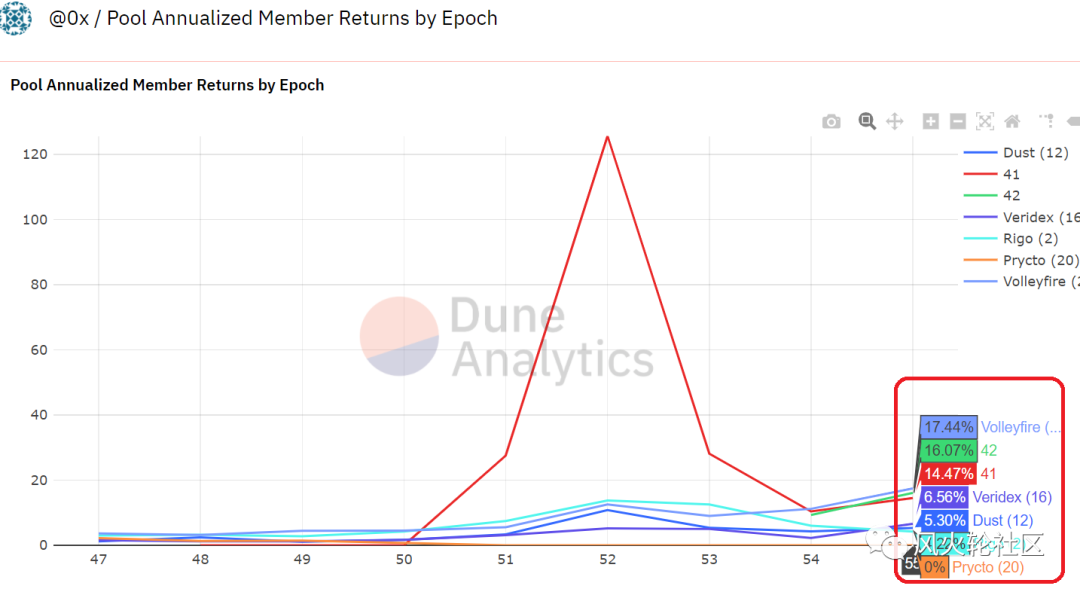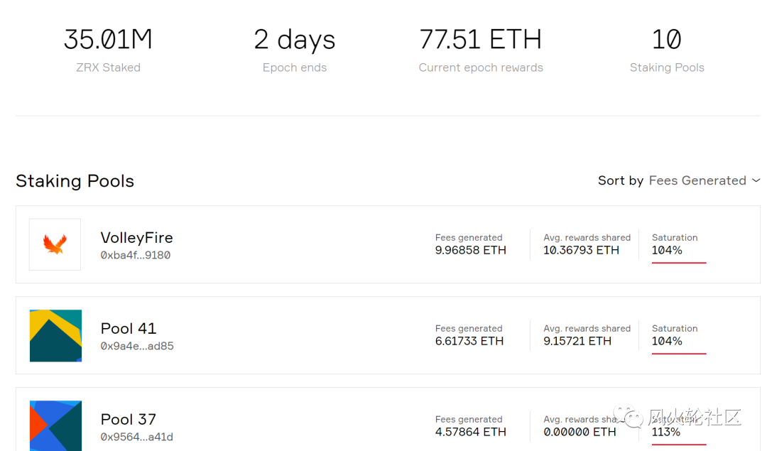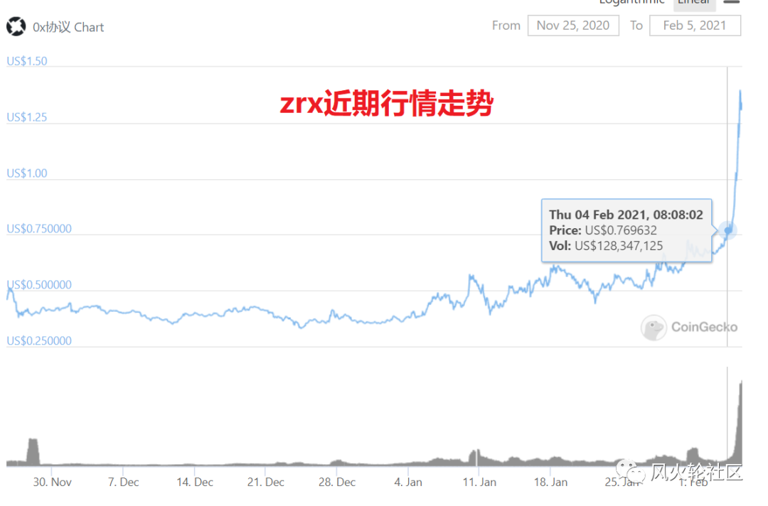 不知道是不是他家有这种聚合交易的量,不太好计算,所以不太在主流数据网站显示,但其实还是有些基本面,而不只是说像现在有些新币可能就只是有限筹码被爆炒,所以我们也称它为一个“隐藏宝藏”。筹码方面,代币ZRX,最早主要是做交易支付,去年改了经济模型,现在一个是治理代币,一个是staking抵押分润。抵押zrx每周(1个epoch)是可以分交易手续费,这部分手续费是给的ETH,现在全网总共有3500万币抵押(流通7.5亿),总共有10个抵押池,这些池子是由大一点的做市商构建,每个池子的分润比例不同,给到的收益也有差异。这个估计是上周的数据,最多的池子年化在15%以上,按平台的情况以及defi热度继续持续的话,后面还有望增长。以上差不多就是我看到的关于0x的一些东西,年前乱七八糟杂事比较多,这个项目我看的比较粗,上面有些可能也没太琢磨清楚,见谅,留待以后再更新。总的来说,还不能把它归为过气dex,他家现在很多基本面也是和uni这些挂钩的,聚合交易这块呢,可能跟普通投资者还相对遥远,它更多适合一些做市商,或者套利者,对他们来说价格一丝一毫的波动和手续费成本都很重要。AMM有无常损失,对偏传统一些的做市商来说,通过聚合交易做市而不是抵押,可能更适合他们的操作手法,这也是这种聚合交易的潜力增长方向,吸引更多的传统做市商加入到链上。0x相对来说是老牌项目,经历了这么多年,能活下来并仍在持续改进,是一种能力体现,其实币圈混久了,对长期的项目会更有好感一点。不过问题上来说,暂时还不能确定它有护城河的优势,特别是感觉项目方偏低调,另一个是上面手续费激励弄得有点复杂,包括现在对普通用户来说,抵押花费的gas费恐怕不知道多久才能靠利息赚回来,可能这个手续费量级要再上一两个台阶,才能成为市场亮眼的标的,后面可以观察下它的数据增长方面,我是感觉会和dex市场的整体趋势保持一致的。目前的价格,今天虽说有点夸张,不过离历史高点还有44%的距离哈。。现在市场上的币,要么不涨,可能真要涨的话,就不会给上车机会了,就像0x这样,山寨的大牛市啊,也随缘随运气。