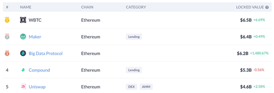 Big Data Protocol是一个最新推出用于从专业数据提供商处获取有商业价值数据的DeFi协议,该协议可以对数据进行代币化,使其具有流动性。不过协议上线仅两天,BDP合约锁仓量就突破了65亿美元,这一成绩令人艳羡。目前,Big Data Protocol锁仓量仅次于MakerDAO和WBTC,位列DeFi协议锁仓量排名第三位。