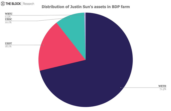 其中一个地址,存入资产量相当于当前锁仓量(16亿美元)的25%,这是很大一笔钱,有人认为这个地址可能属于孙宇晨,因为据称他正在购买Jack Dorsey首个推文的NFT。该地址在BDP收益耕作合约中添加了: