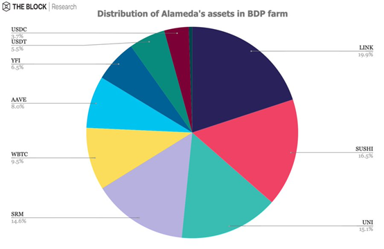 当然,@0x_b1也参与了收益耕作,在BDP合约中投入了价值1.36亿美元的加密资产。与Alameda一样,资产多样性很“丰富”,包括: