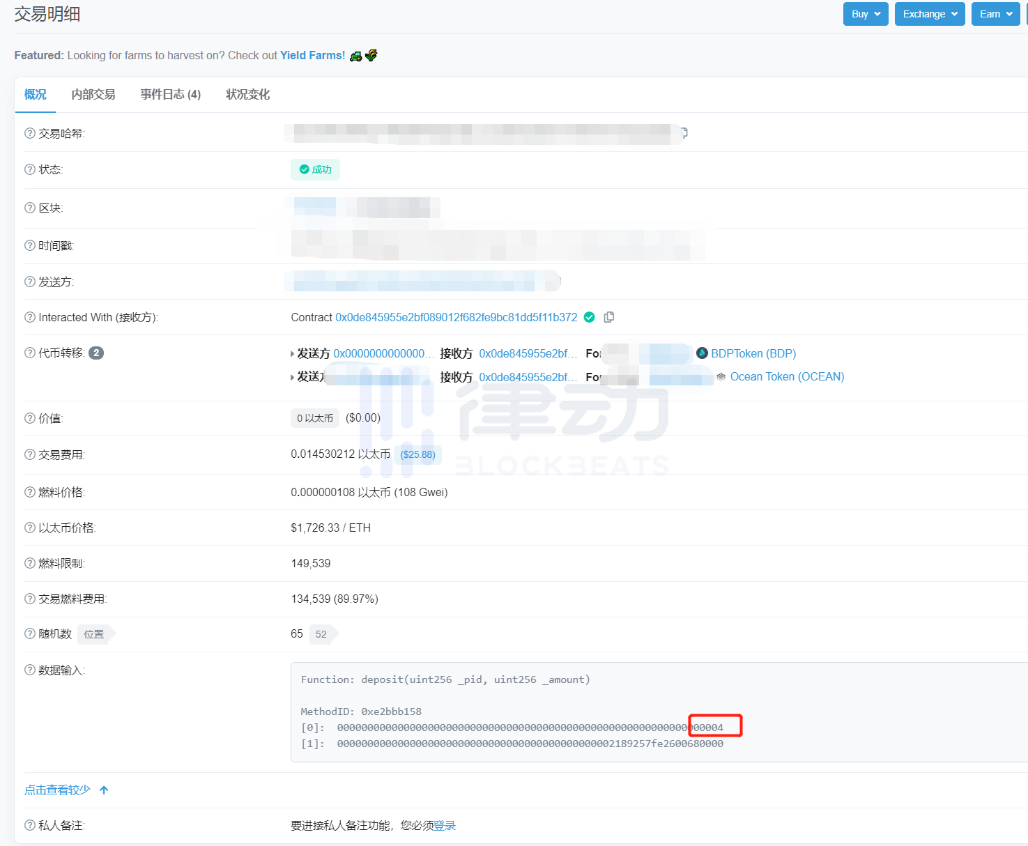 1、找到向 Big Data Protocol 合约转账的 unit256 pid。(律动注:该数字为池子编号,如 WBTC 则为 0,WETH 为 1)