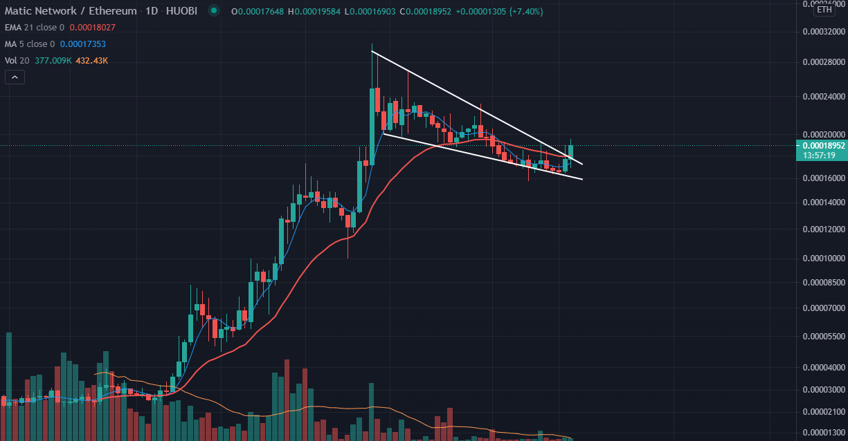 根据我们上周发布的牛市行情把控原则,我们选出部分优质加密货币进行布局,MATIC相对于以太坊和比特币的交易对都已经实现突破,在美金本位,MATIC帮助我们的投资人获得超过22%的收益。