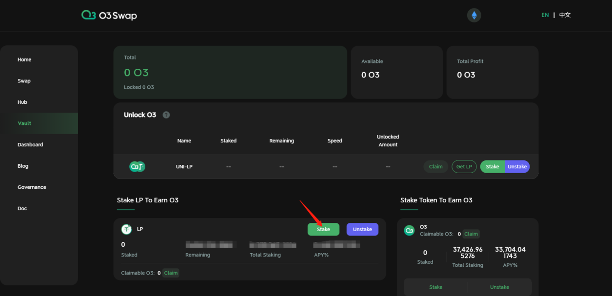 点击Stake(注意,此时必须将钱包连接以太网络)