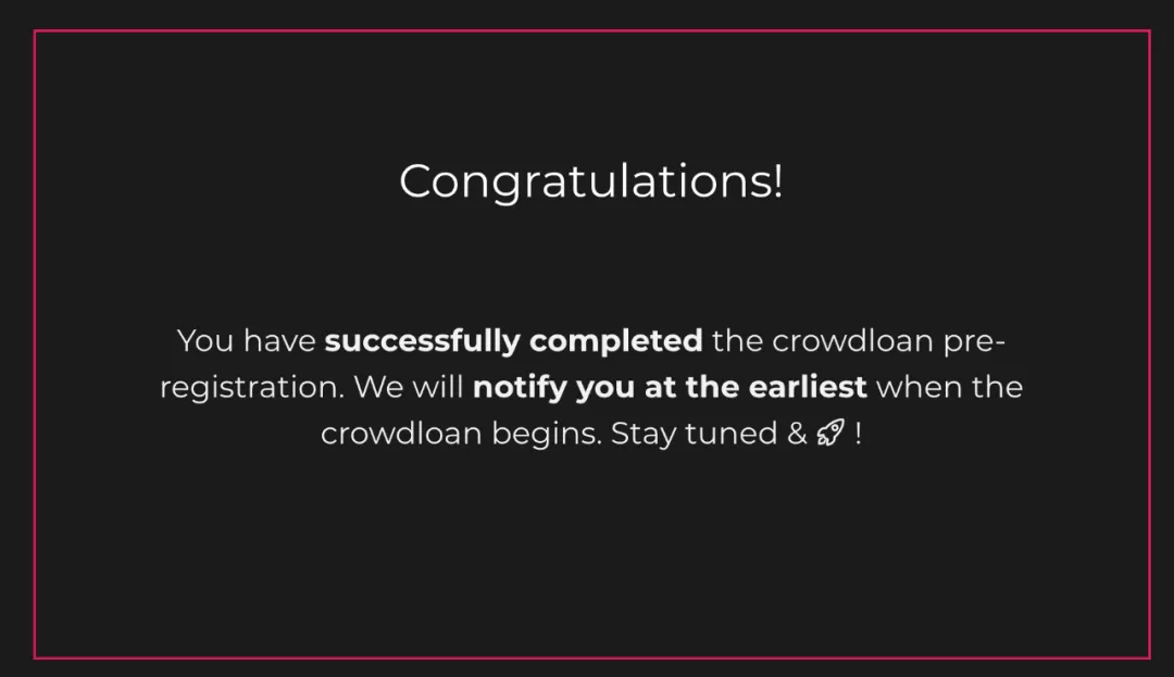 目前阶段仍处于预注册的活动,还未正式开始众贷与竞拍,但收到专属推荐链接与推荐码的你,可以开始提前向朋友分享,让朋友填写未来将要参与 Karura 众贷的 KSM 地址与邮箱。