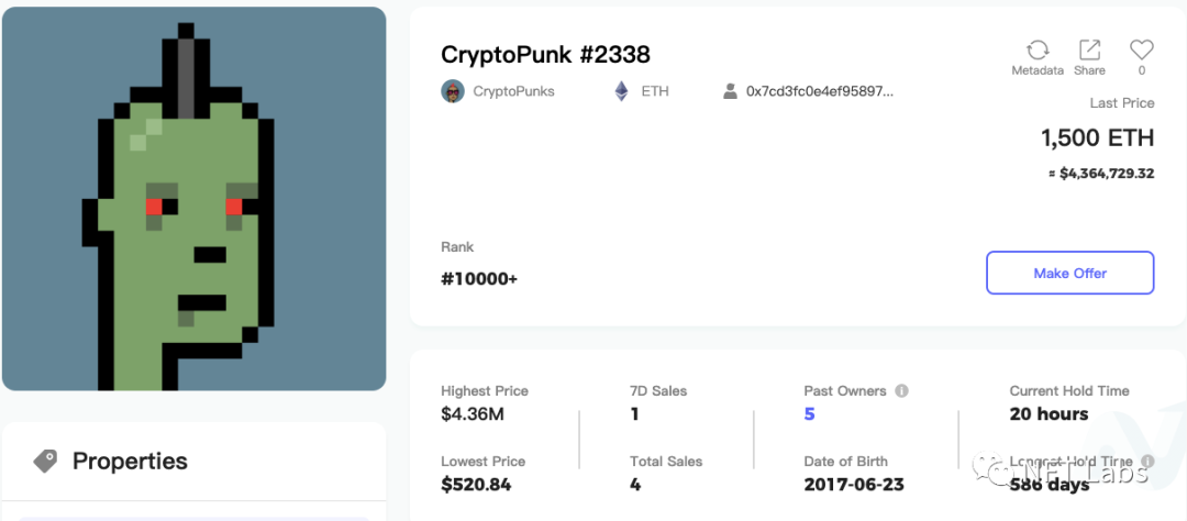 看交易平台的信誉度,很多有影响力的NFT,都恰好出售自同一大平台。平台信誉背书,可以入手资质更好的NFT。通过查看一件NFT的售卖历史,当我们看到一件NFT的售价持续走高时,可知它的发展势头良好,也许就是个入手的好时机。