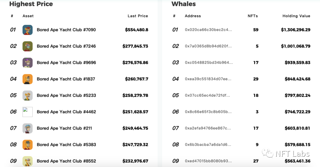 主观角度,除了作为买家,自身在艺术品世界的爱好和偏好以外。我们可以追踪有影响的人物。太早投入一个NFT藏品,很有可能看不到收益,但如果追踪有影响力的卖家,我们可以看到一段时间内他的个人售卖行为,以此追踪一个NFT产品的售卖趋势。还可以追踪那些“巨鲸”,来观察影响力买家如何通过买进和出售NFT资产,赚取收益。