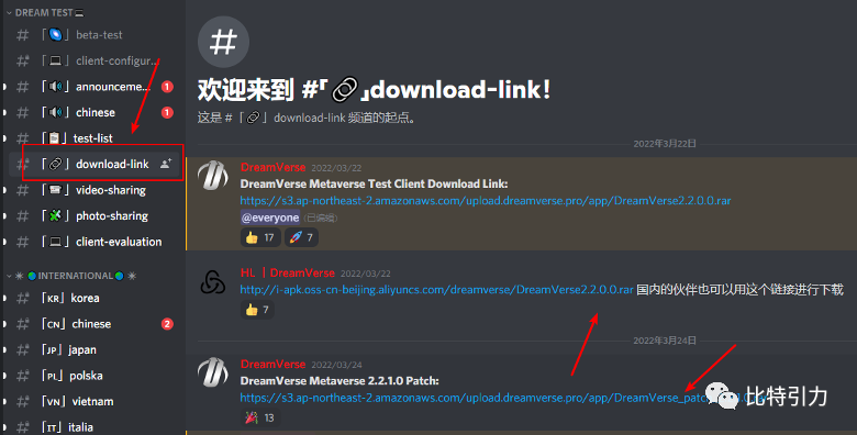 2)有了内测权限之后,接下来在 download-link 频道,找到下载链接进行下载。