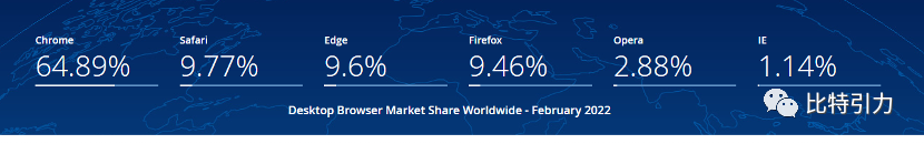 ▲全球市场,桌面浏览器,2021年2月--2022年2月