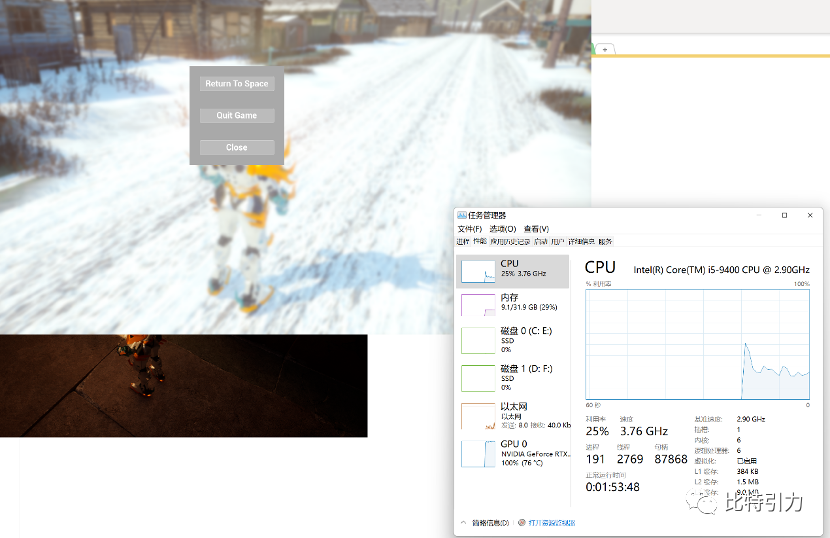 5)还有最关键的一点,就是你的电脑硬件配置要足够好,重点是 GPU。我的 GPU 配置是 RTX2060,游戏开起来资源占用率基本是接近 100%。低于我这个配置的小伙伴,不建议试了,后续正式版本官方应该会优化此问题。