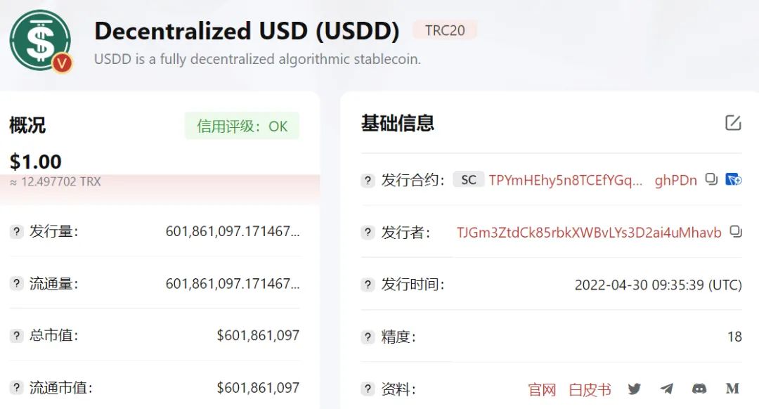 据最新消息,5月28日,波场去中心化算法稳定币USDD发行量突破6亿枚,再创新里程碑。