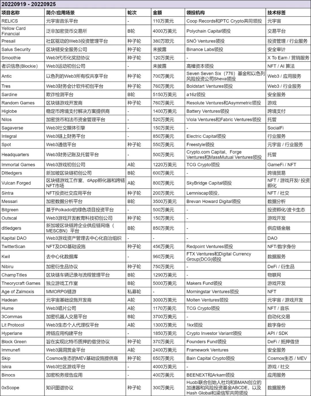 从投资赛道来看,Web3 应用和工具类项目受到换用,如 Web3 社区游戏平台 Iskra (4000 万美元), Web3 漏洞赏金平台 Immunefi(2400 万美元)等;本周链游领域公开融资事件 9 起,总融资金额超过 8700 万美元,以游戏开发居商多。