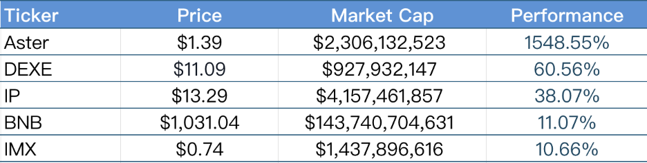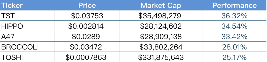 1. 本周涨幅前五的 VC 币和 Meme 币
