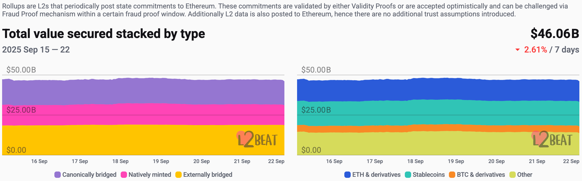据 L 2 Beat 数据显示,以太坊 Layer 2 总 TVL 为460.4亿美元,本周较上周($471.3亿)整体跌幅为2.3%。