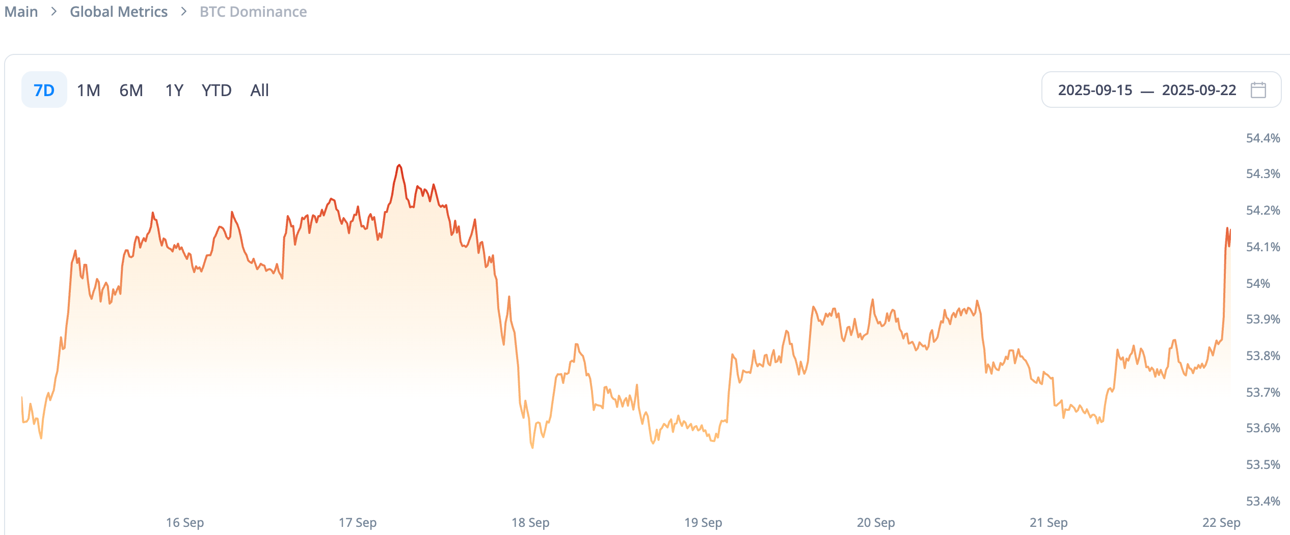 截止至发稿,的市值为2.28万亿美元,占加密货币总市值的54.2%。与此同时,稳定币的市值为2,896亿美元,占加密货币总市值的6.88%。比特币